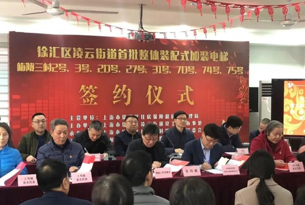 既有多層住宅加裝電梯是上海市2021年“民心實事工程”,目前這項解決居民上下樓難題的民生工程正在徐匯持續(xù)推進中。讓“懸空老人”接地氣,3月3日,徐匯區(qū)凌云街道梅隴三村八個樓棟同時進行了電梯加裝簽約。居民們“身居舊宅,安享電梯”不再是夢,他們的電梯夢圓正式進入倒計時。