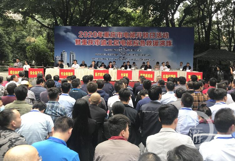 9月23日下午,2020年重慶市電梯開(kāi)放日活動(dòng)暨渝北區(qū)電梯應(yīng)急救援演練在加州城市花園小區(qū)舉行。 在現(xiàn)場(chǎng),40多位市民和媒體記者組成了三個(gè)觀摩小組,各自挑選小區(qū)1棟住宅樓,到頂樓的電梯機(jī)進(jìn)行參觀,了解電