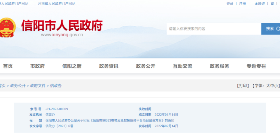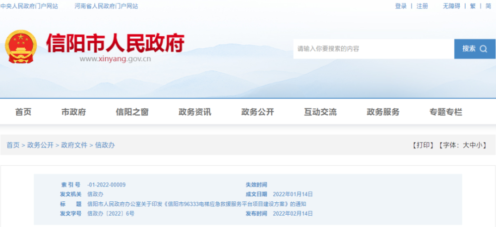 信陽市人民政府辦公室 關于印發(fā)《信陽市96333電梯應急救援服務 平臺項目建設方案》的通知 各縣、區(qū)人民政府,各管理區(qū)、開發(fā)區(qū),市政府有關部門: 《信陽市96333電梯應急救援服務平臺項目建設方案》已