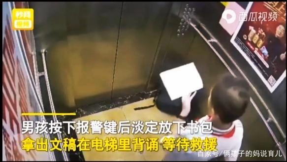 小男孩被困電梯等待救援時(shí)淡定背書(shū)