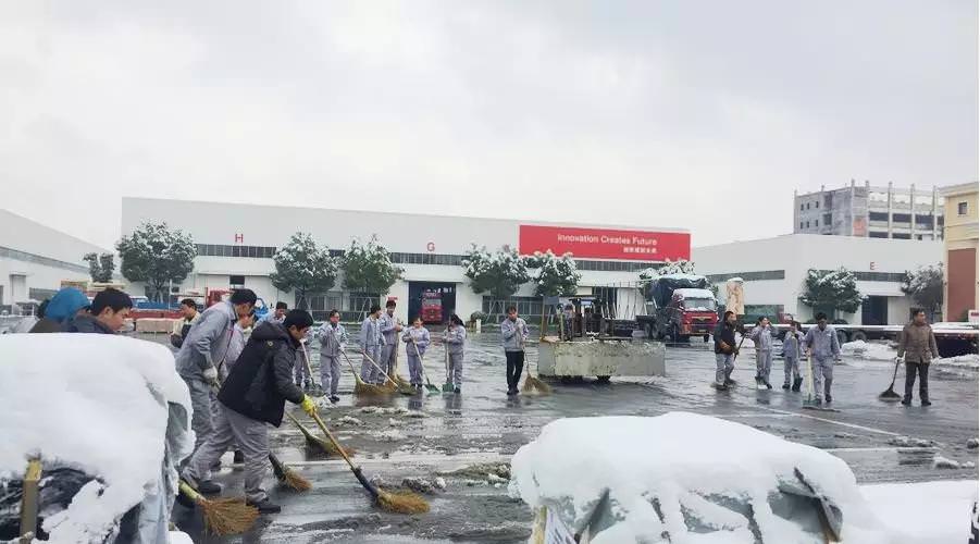 “天降大雪,銀裝素裹,雪國風光,氣派斐然。”在感受美景的同時,大雪也給工廠內(nèi)部的交通帶來了不便?!耙匝榱?,雪停路凈”,為確保西尼機電春節(jié)前的正常生產(chǎn)發(fā)運,公司領導自覺帶頭,各部門員工積極響應,一