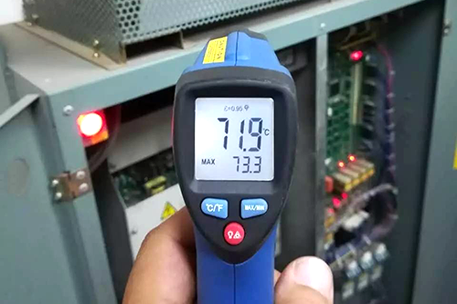 當(dāng)環(huán)境溫度超過機(jī)房的允許溫度時(shí),會嚴(yán)重影響曳引電機(jī)的散熱,由于電機(jī)的頻繁啟、制動,電機(jī)本身會釋放大量的熱量,而機(jī)房的高溫又不能及時(shí)排除,電機(jī)持續(xù)在高溫環(huán)境運(yùn)行,很容易燒壞線圈,損壞電機(jī)。