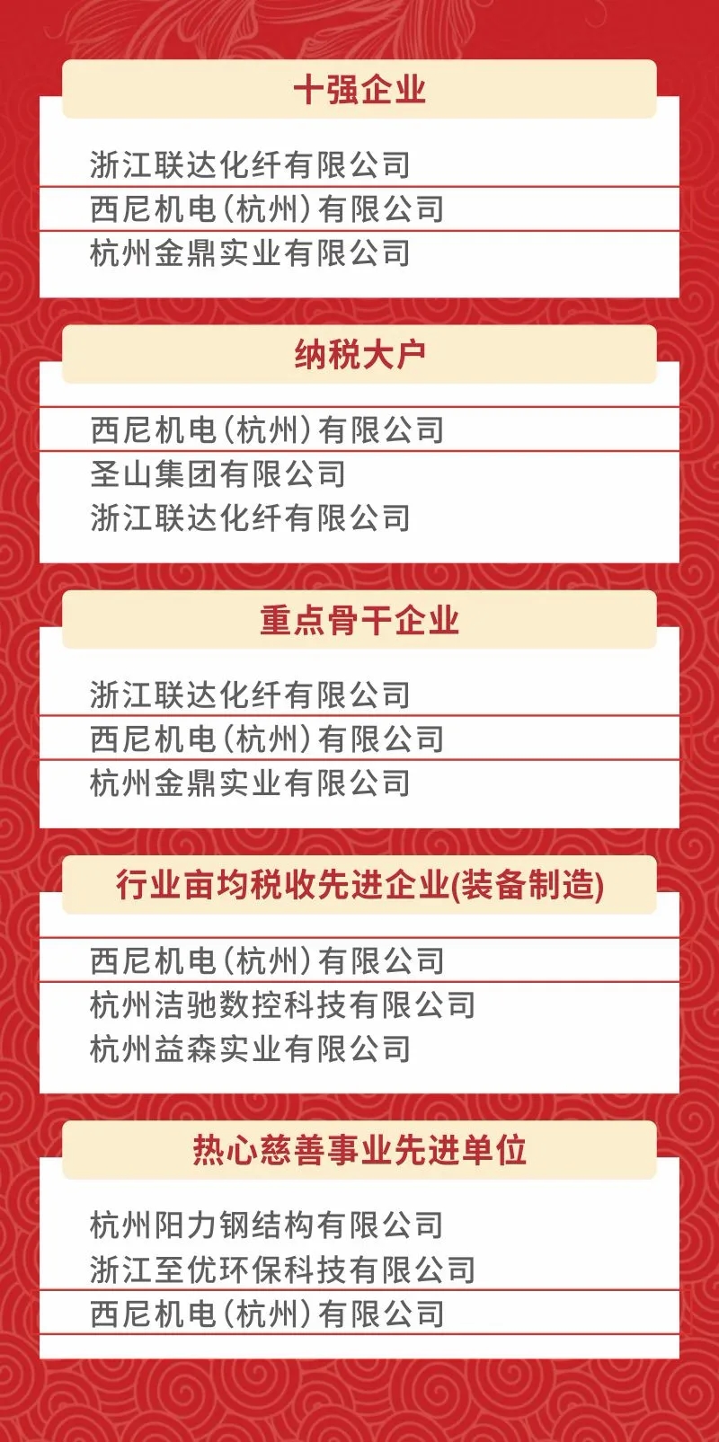 會(huì)議表彰一批為我區(qū)經(jīng)濟(jì)社會(huì)發(fā)展作出杰出貢獻(xiàn)的企業(yè)單位。西尼機(jī)電憑借卓越的發(fā)展勢(shì)頭,乘風(fēng)破浪榮獲2021年度之“十強(qiáng)企業(yè)”、“重點(diǎn)骨干企業(yè)”、“納稅大戶(hù)(第一名)”、“行業(yè)畝均稅收先進(jìn)企業(yè)(第一名)”、“熱心慈善事業(yè)先進(jìn)單位”等五項(xiàng)殊榮。