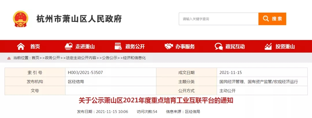 【榜上有名】關(guān)于公示蕭山區(qū)2021年度重點培育工業(yè)互聯(lián)平臺的通知!