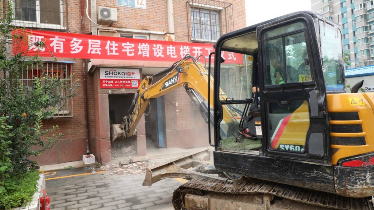 施工現(xiàn)場,挖掘機(jī)正在對樓道外墻體進(jìn)行拆除,拆除作業(yè)完成后將在樓道外安裝半層入戶的橫向電梯。施工負(fù)責(zé)人徐輝向記者介紹,電梯加裝主要涉及管線改裝和電梯安裝兩個(gè)部分,總工期大概需要半年時(shí)間,施工過程中,將做好監(jiān)督管理工作,確保電梯安全準(zhǔn)時(shí)投入使用。