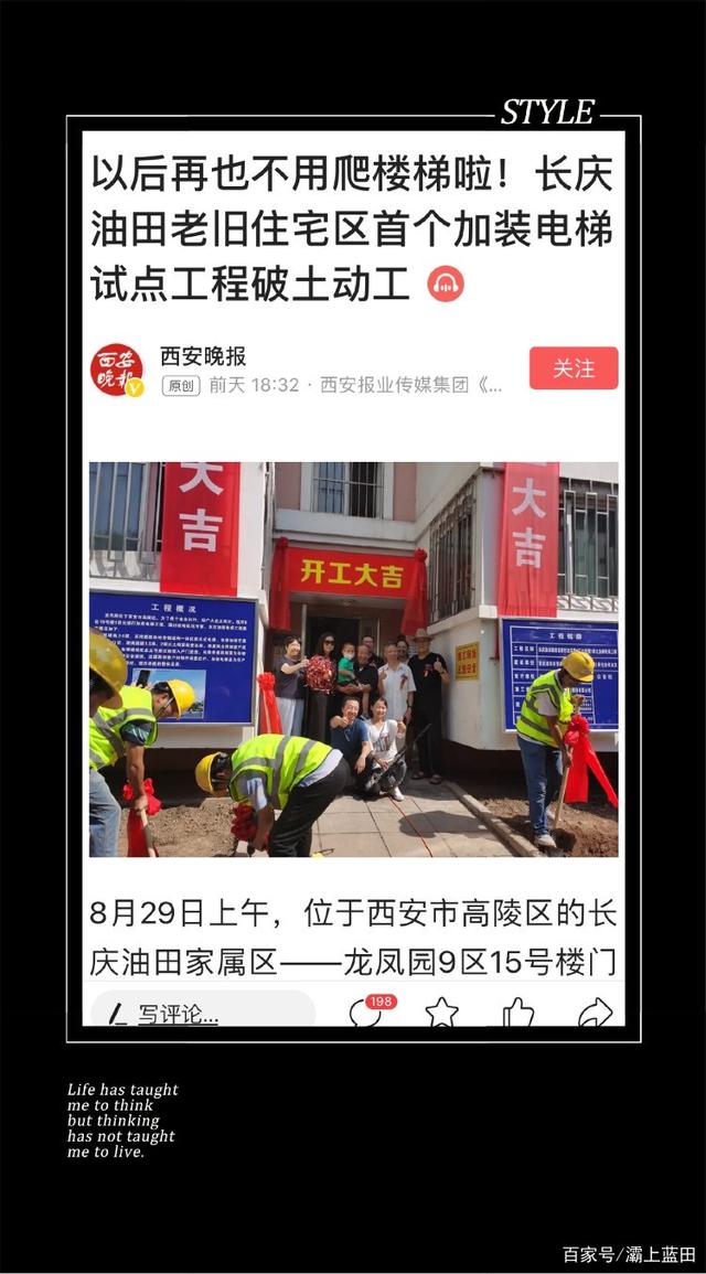 網上看到媒體報道高陵長慶油田老小區(qū)加裝電梯了,這是好事,大多數(shù)住老舊小區(qū)的業(yè)主都盼望加裝電梯。這不高陵區(qū)油田老小區(qū)開始改造加裝電梯了,算是開了一個先河,希望未來更多的老舊小區(qū)都能安裝電梯。